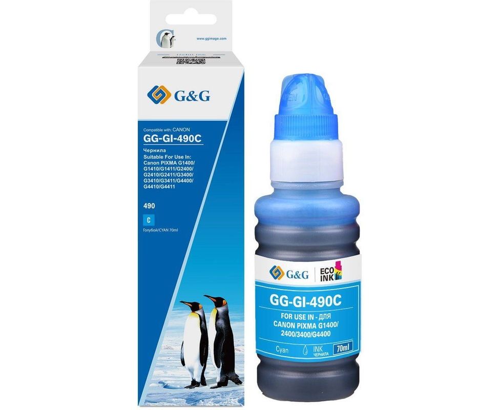 Чернила G&G GG-GI-490C GI-490 голубой 70мл для Canon Pixma G1400/G2400/G3400/G4400