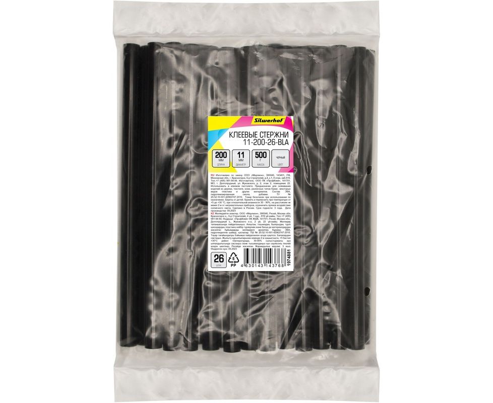 Cтержни клеевые для клеев. пистолета Silwerhof 11-200-26-BLA L-200мм D11мм черный 26шт