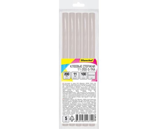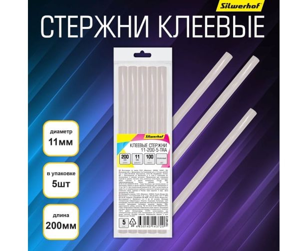 Cтержни клеевые для клеев. пистолета Silwerhof 11-200-5-TRA L-200мм D11мм прозрачный 5шт