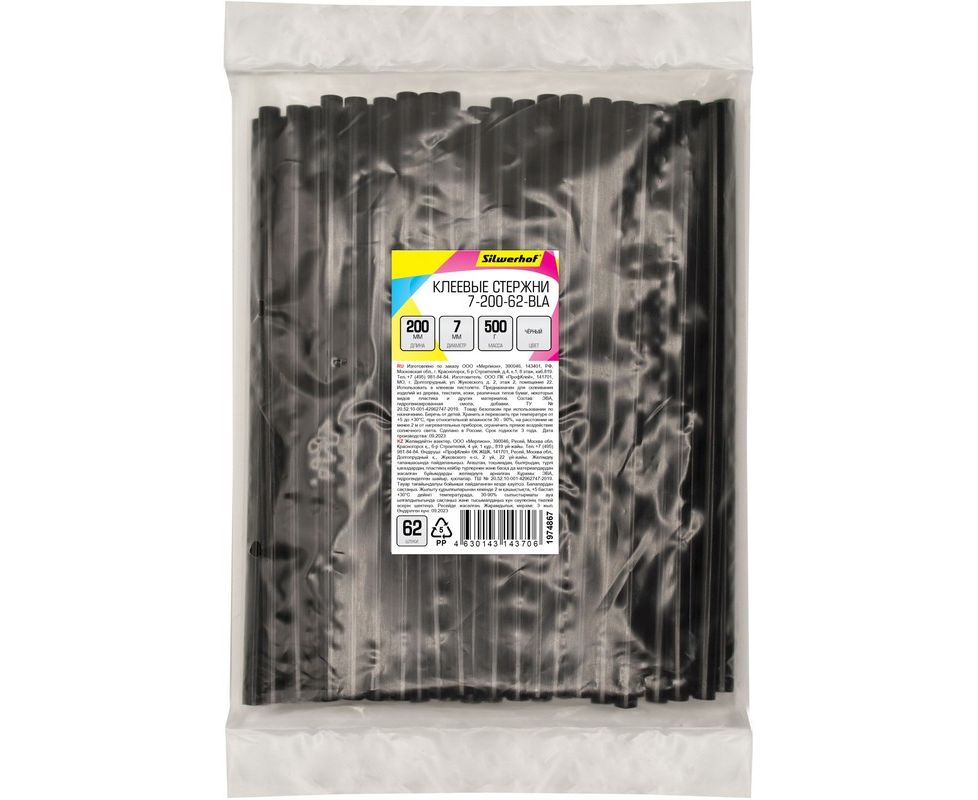 Cтержни клеевые для клеев. пистолета Silwerhof 7-200-62-BLA L-200мм D7мм черный 62шт