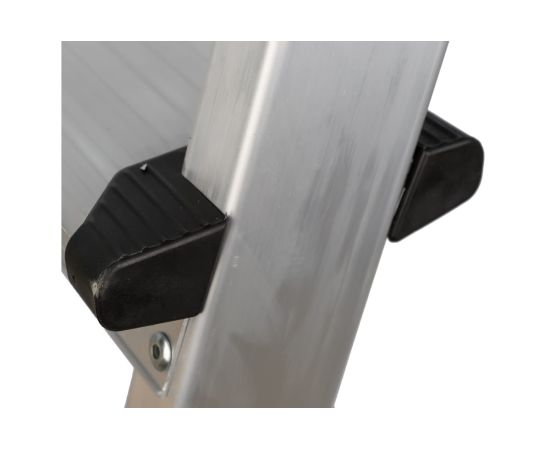 Алюминиевая конструкция делает стремянку легкой и прочной, ее можно эксплуатировать внутри помещений и на улице, так как она не подвержена коррозии.