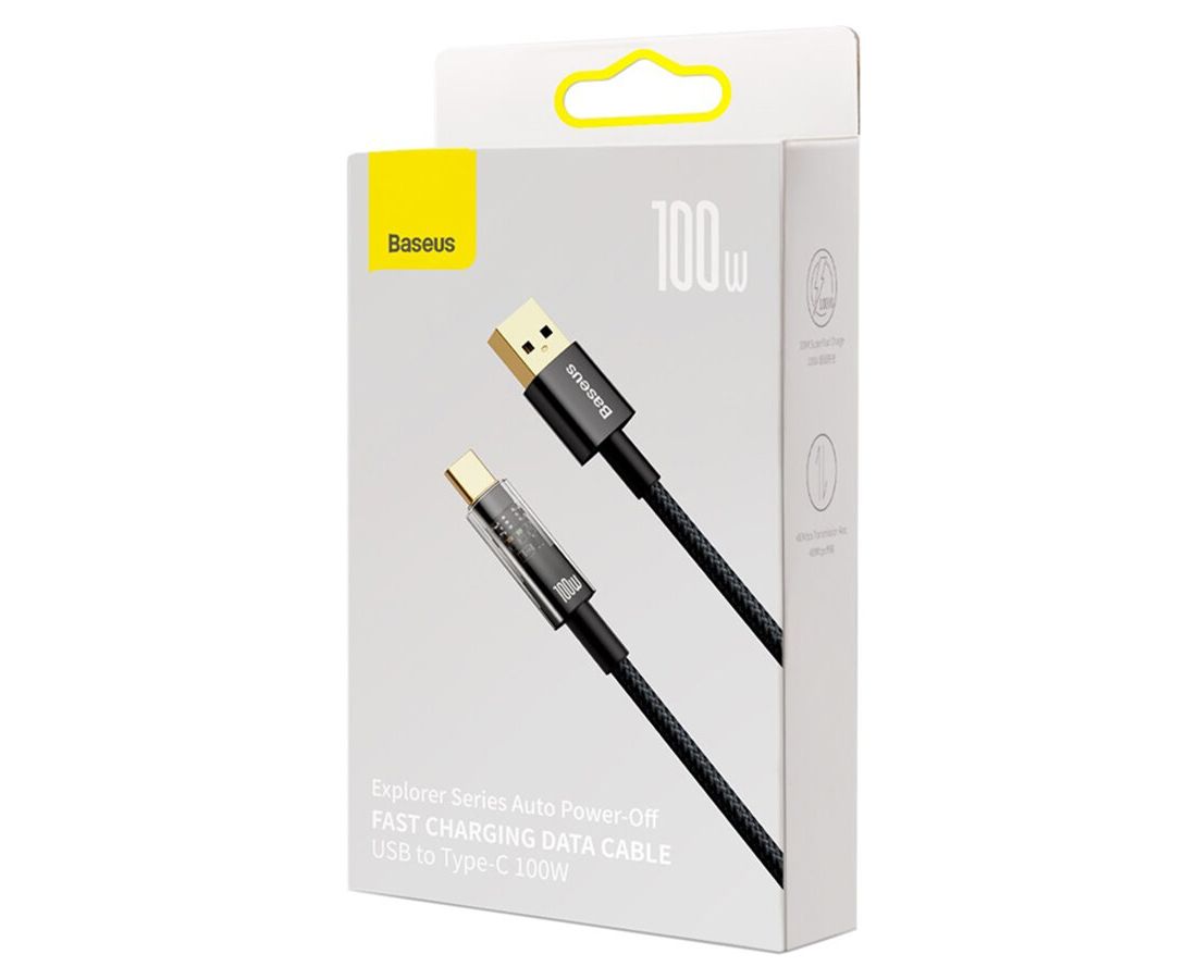Дата-кабель Baseus Explorer (CATS000301) Auto Power-Off Fast Charging USB to Type-C 100W 2m Black