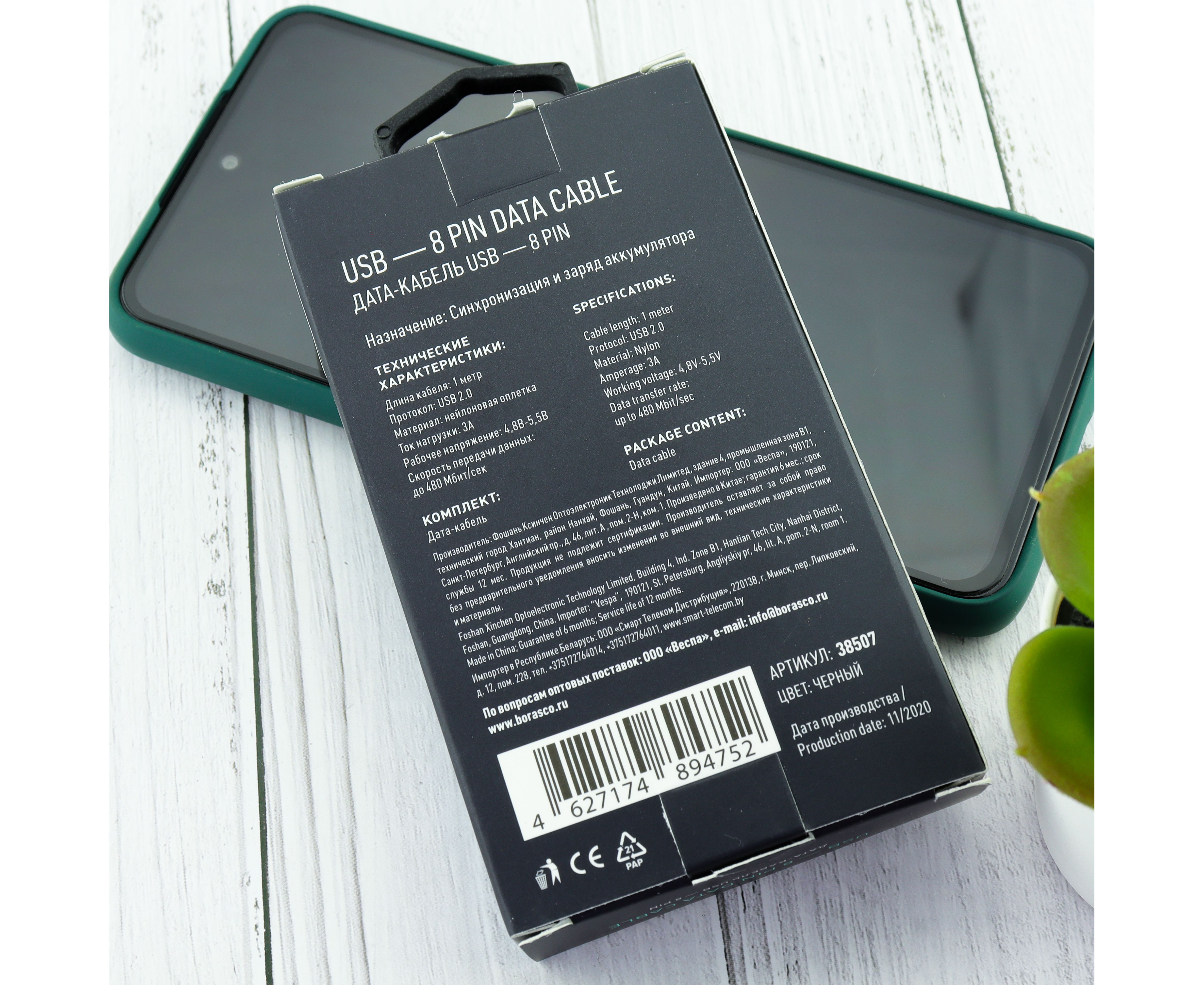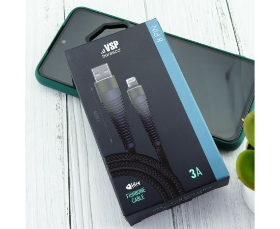 Дата-кабель Borasco Fishbone USB - 8 pin, 3А, 1м (черный)