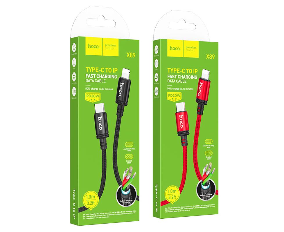 Дата-кабель Hoco X89 Wind PD charging data cable ip (packaged) black