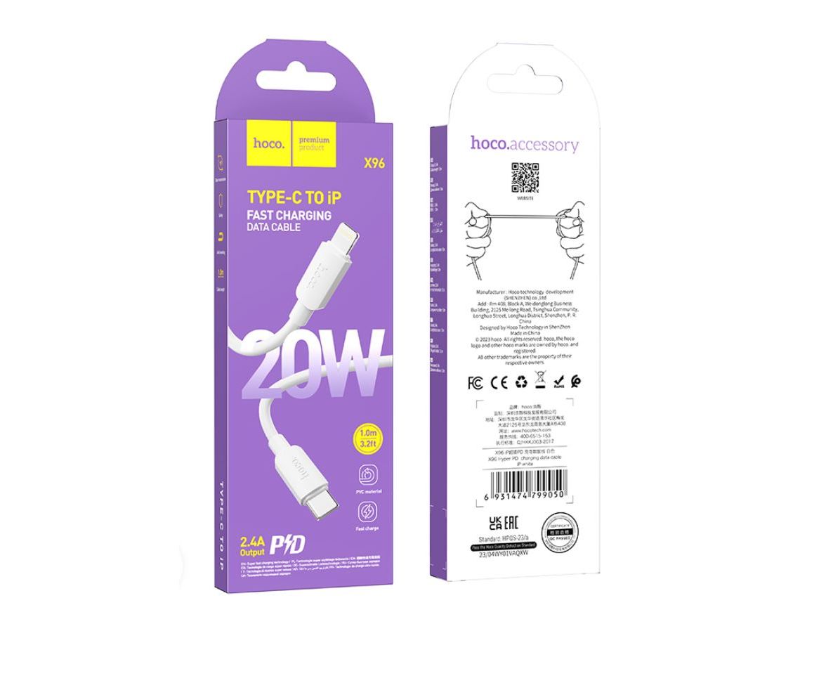 Дата-кабель HOCO X96 Hyper charging Lightning, 1м (белый)
