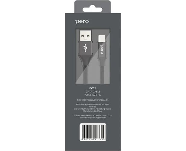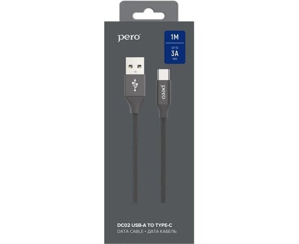Дата-кабель PERO DC-02 Type-C, 2А, 1м черный