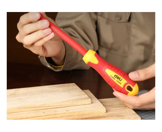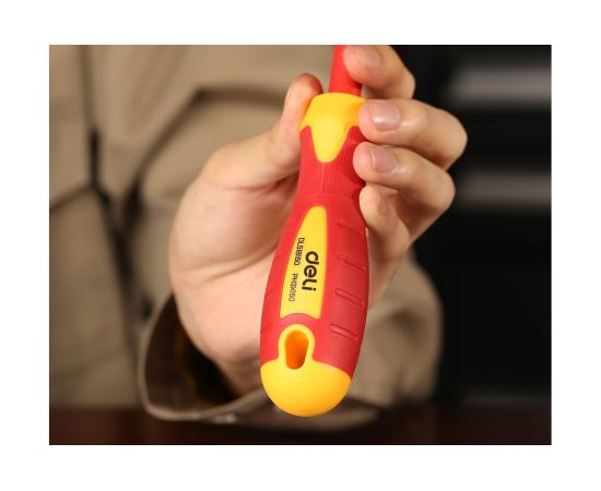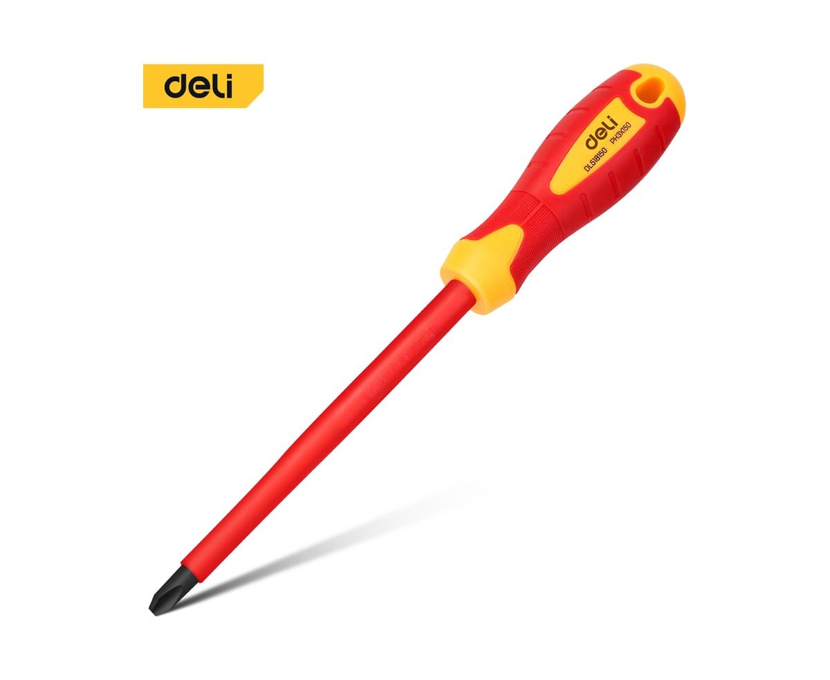 Диэлектрическая крестовая отвертка Deli DL518150 PH3х150мм сталь Cr-V, сертификат VDE для работ под напряжением до 1000 В