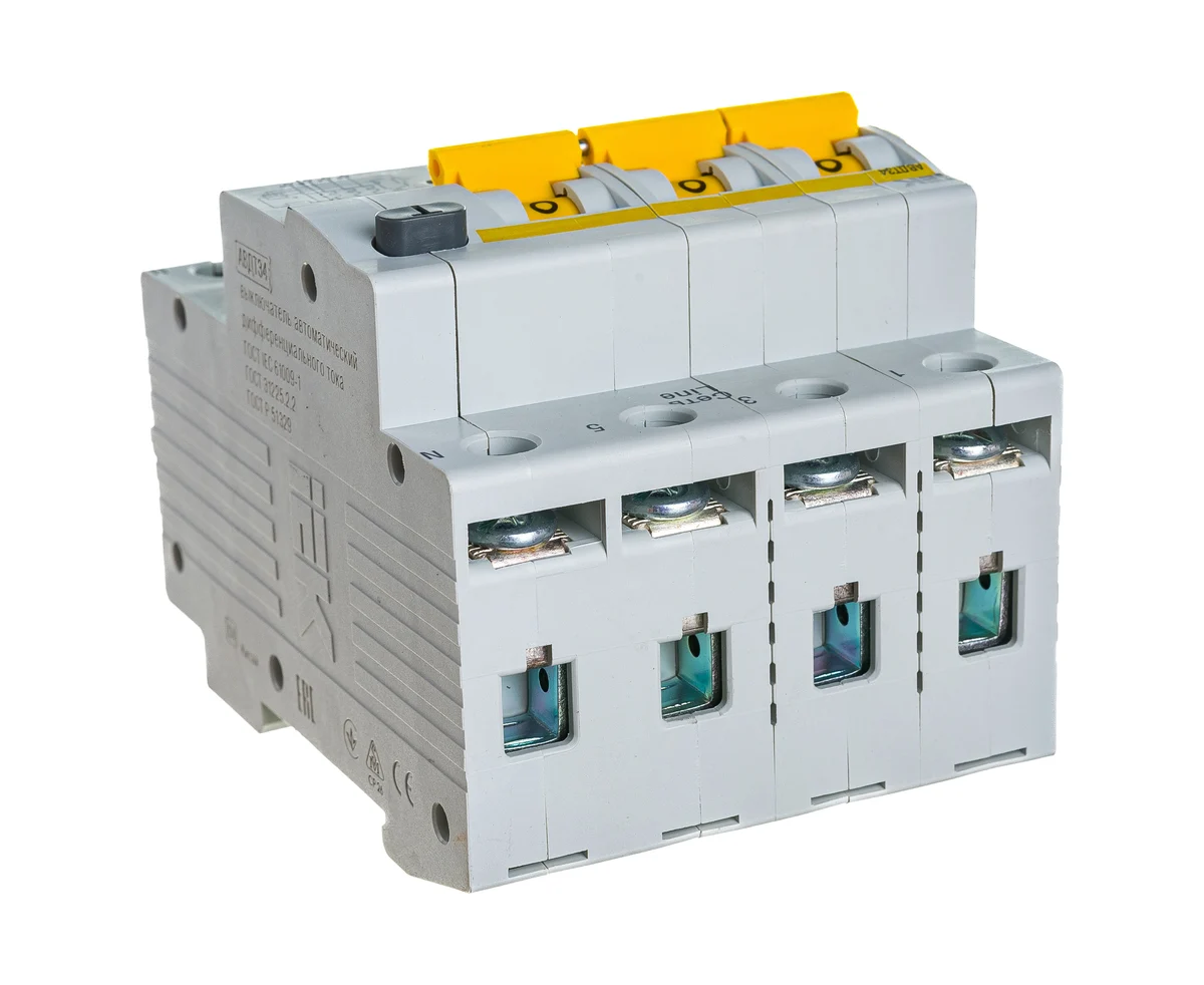 Дифавтомат IEK АВДТ 34 (MAD22-6-016-C-30) 16A тип C 6kA 30мА A 4П 400В 4мод белый (упак.:1шт)