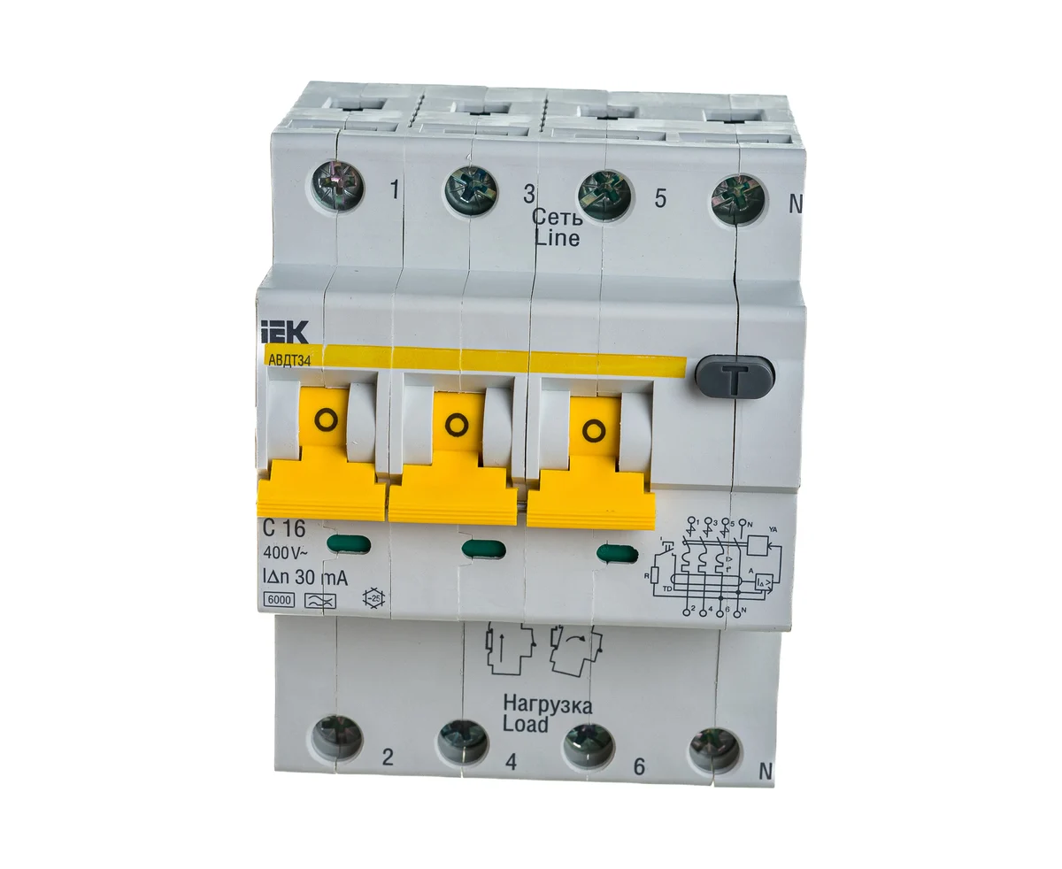Технические характеристики IEK АВДТ-34 3п+N, 2мод, C 16 A, 30 мA, A, 6 kA MAD22-6-016-C-30