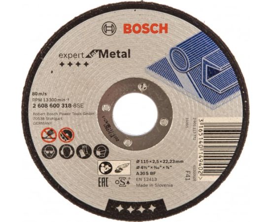 Диск абразивный BOSCH 2608600318 по металлу отрезной 115х22х2,5мм 1шт