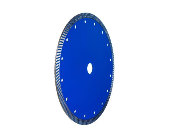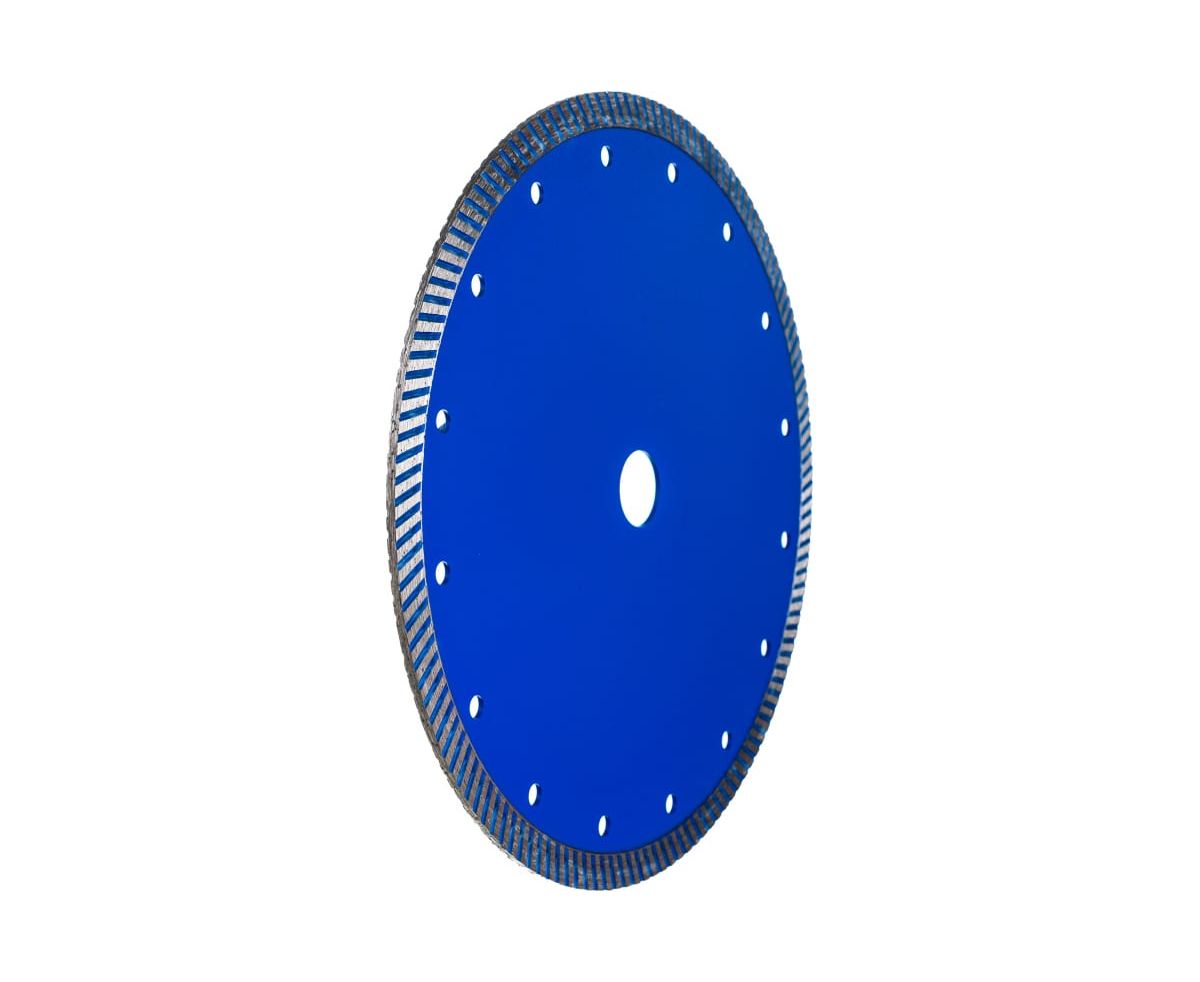 Особенности: диск с рифленой кромкой имеет более чистый и аккуратный по сравнению с сегментными дисками рез. За счет турбированной кромки увеличивается скорость реза, отверстия на теле диска способствуют лучшему охлаждению и продлевают срок службы. Подходит для сухого и мокрого реза.
