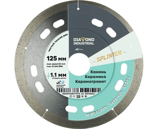 Диск алмазный ультратонкий Diamond Industrial Splinter DID125ULT 125x8x1.1x22,23