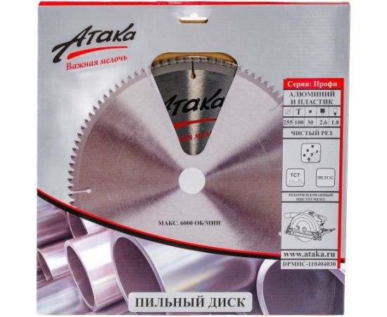 Диск пильный АТАКА 8077910 255*100T*30 алюминий пластик ч/рез профи