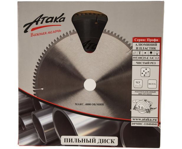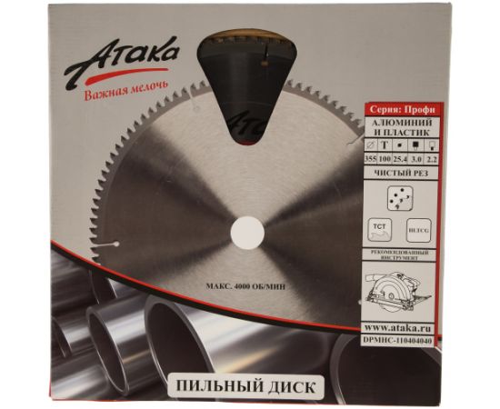 Диск пильный АТАКА 8077960 355*100T*25.4 алюминий пластик ч/рез профи