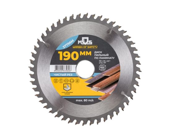 Диск пильный для циркулярных пил по ламинату MOS 37796М 190x30x48T + 2 кольца: 30/20 и 20/16 мм