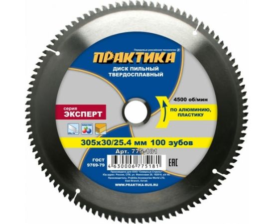 Технические характеристики диска по алюминию ПРАКТИКА 775-181