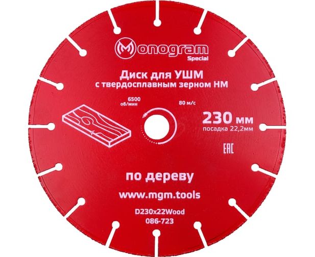 Диск пильный по дереву Monogram 086-723 d-230мм dпосад-222мм угловые шлифмашины (упак 1шт)