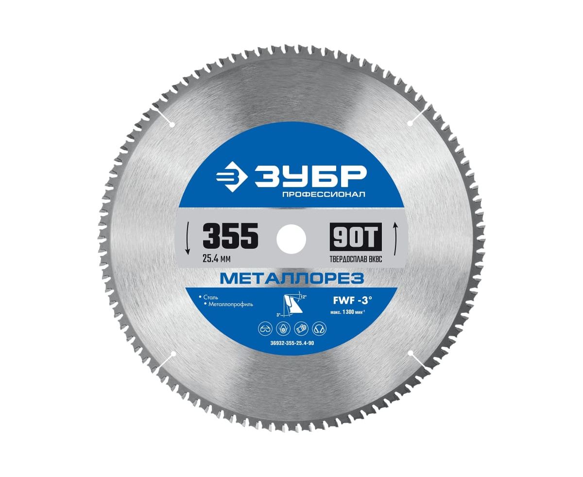 Технические характеристики пильного диска по металлу и металлопрофилю ЗУБР 36932-355-25.4-90