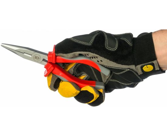 Изолированные длинногубцы безопасны при работе с оборудованием под напряжением до 1000 В. Рабочая часть изготовлена из инструментальной стали и покрыта никелем для повышения коррозионной стойкости, что гарантирует большой срок службы. Рукоятки из многокомпонентного материала не скользят в ладони. Упоры под пальцы исключают контакт руки с объектом.