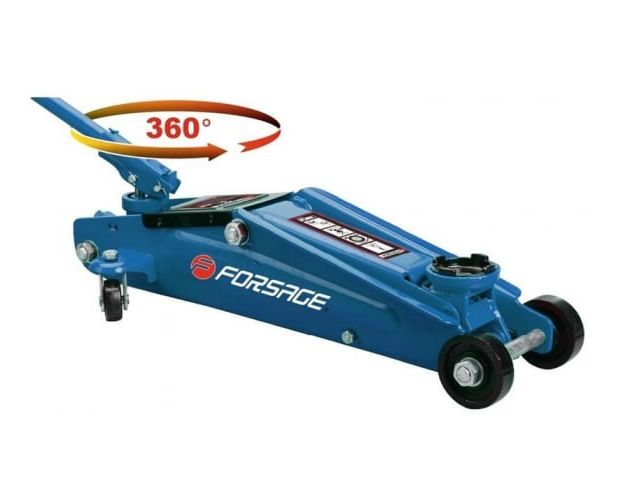 Подкатной гидравлический домкрат с вращающейся ручкой 3т, узкая база Forsage F-T83003C обладает небольшой шириной, что значительно упрощает работу с любыми марками автомобилей и тяжелым станочным оборудованием.