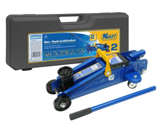Подкатной гидравлический домкрат KRAFT 2 т, кейс KT 820001 предназначен для поднятия грузов. Отличается простотой обслуживания и надежностью в эксплуатации, позволяя осуществить плавный подъем груза и его точную остановку на заданной высоте при небольшом рабочем усилии. Функциональные особенности: Высокая устойчивость, предохранительный клапан, удобная ручка. (min 135 mm - max 320 mm).