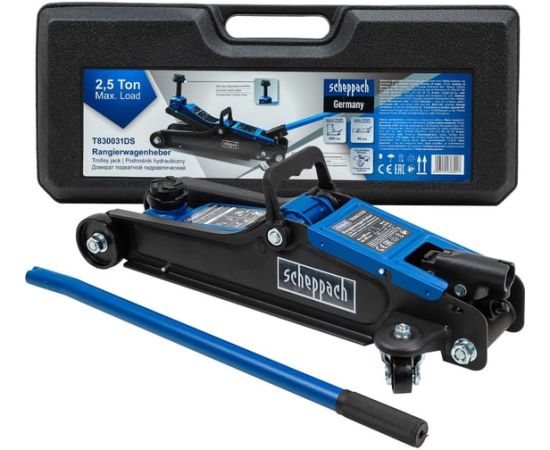 Домкрат подкатной гидравлический от немецкого бренда SCHEPPACH обладает грузоподъемностью до 2,5 тонн. Оптимально подходит для ежедневного использования в автомастерской, на шиномонтаже или в гараже.