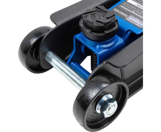 Удобство использования. Максимальный уровень подъема 400мм. Минимальная высота подхвата 90мм, что необходимо для автомобилей с низким клиренсом. Оснащен предохранительным и спускным клапаном, что предхраняет от поломки вследствие перегрузки, и позволяет плавно без усилий опустить домкрат. Возвратная пружина легко возвращает подъемный механизм в исходное положение. Также домкрат имеет два поворотных колеса на 360 градусов для плавной маневренности и 2 фиксированных для устойчивости.