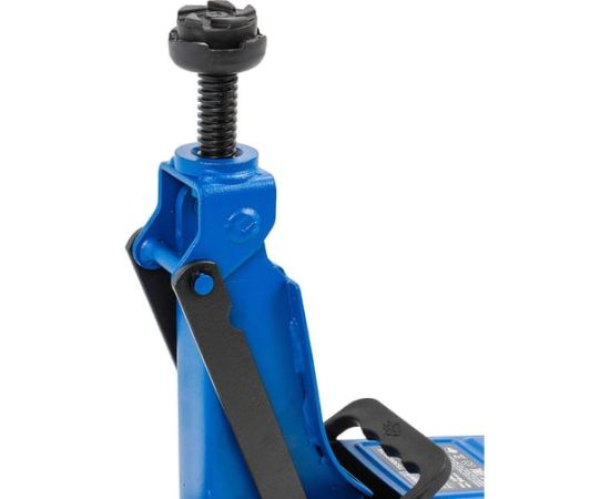 Безопасность. Съемная рукоять с резиновой ручкой обеспечивает безопасное использование гидравлического домкрата. Конструкция домкрата включает ручку для переноски. Резиновая накладка на штоке защищает автомобиль от соскальзывания и повреждений.
