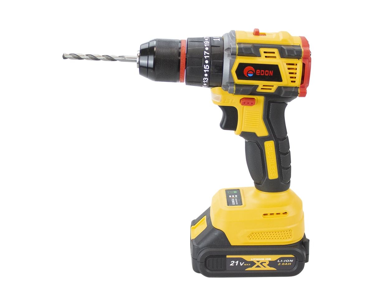 Бесщеточная ударная дрель-шуруповерт Edon AD-21PBL - это мощный и удобный в использовании аккумуляторный инструмент. Он предназначен для сверления отверстий и закручивания или откручивания различного крепежа.