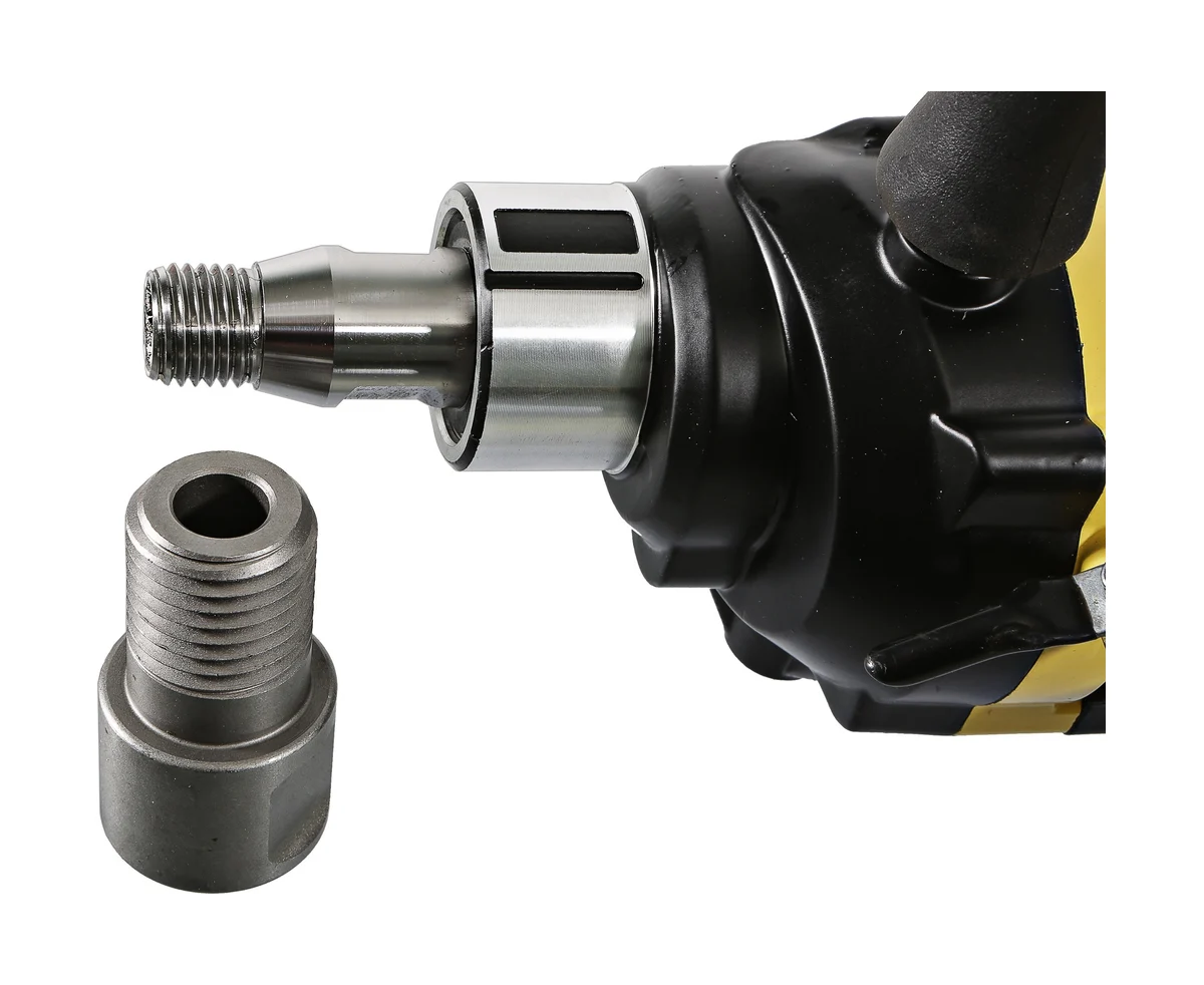 Применение в конструкции фирменных японских подшипников NSK повышенного ресурса способствует исправной и долговечной эксплуатации электроинструмента. Удобству в практическом обращении с дрелью содействует адаптер под алмазные коронки с хвостовиком 1 1/4", идущий в комплекте, фиксатор-липучка расположенный на кабеле и блокировка выключателя во включенном положении при длительных работах. Регулировка частоты вращения осуществляется усилием, приложенным к кнопке включения.