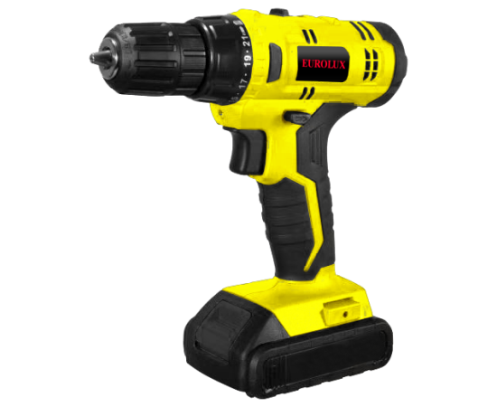 Аккумуляторная дрель-шуруповерт Eurolux ДА-18/2Li – ручной электроинструмент с регулируемым крутящим моментом, предназначенный для закручивания и откручивания шурупов, саморезов, винтов и других видов крепежных изделий, а также сверления отверстий в различных конструкционных материалах.