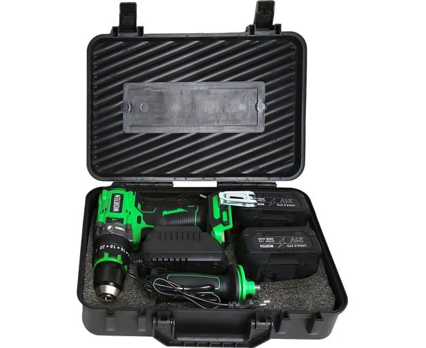 Дрель-шуруповерт WORTEN КА-90000703 ударная бесщеточная в кейсе 150 Нм, 2х4.0Ач+ЗУ, 21В