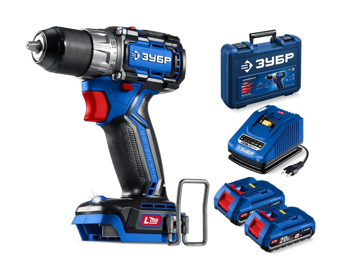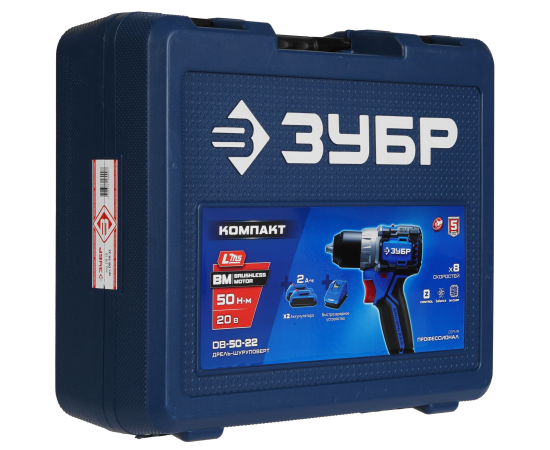 ЗУБР Профессионал Компакт 20 В, 50 Н·м, 2 АКБ LMS (2 А·ч), бесщеточная дрель-шуруповерт, кейс DB-50-22 - высокотехнологичная модель в новой линейке аккумуляторного инструмента ЗУБР серии LMS.