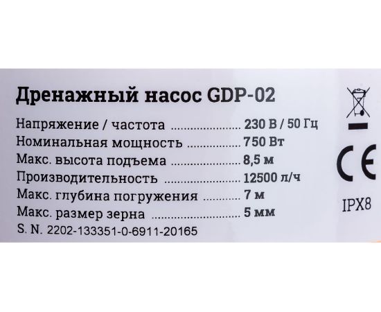 Дренажный насос Gigant GDP-02 8,5/7м, 750Вт