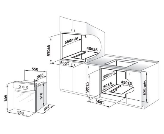 Размеры для встраивания: 56x55x58см