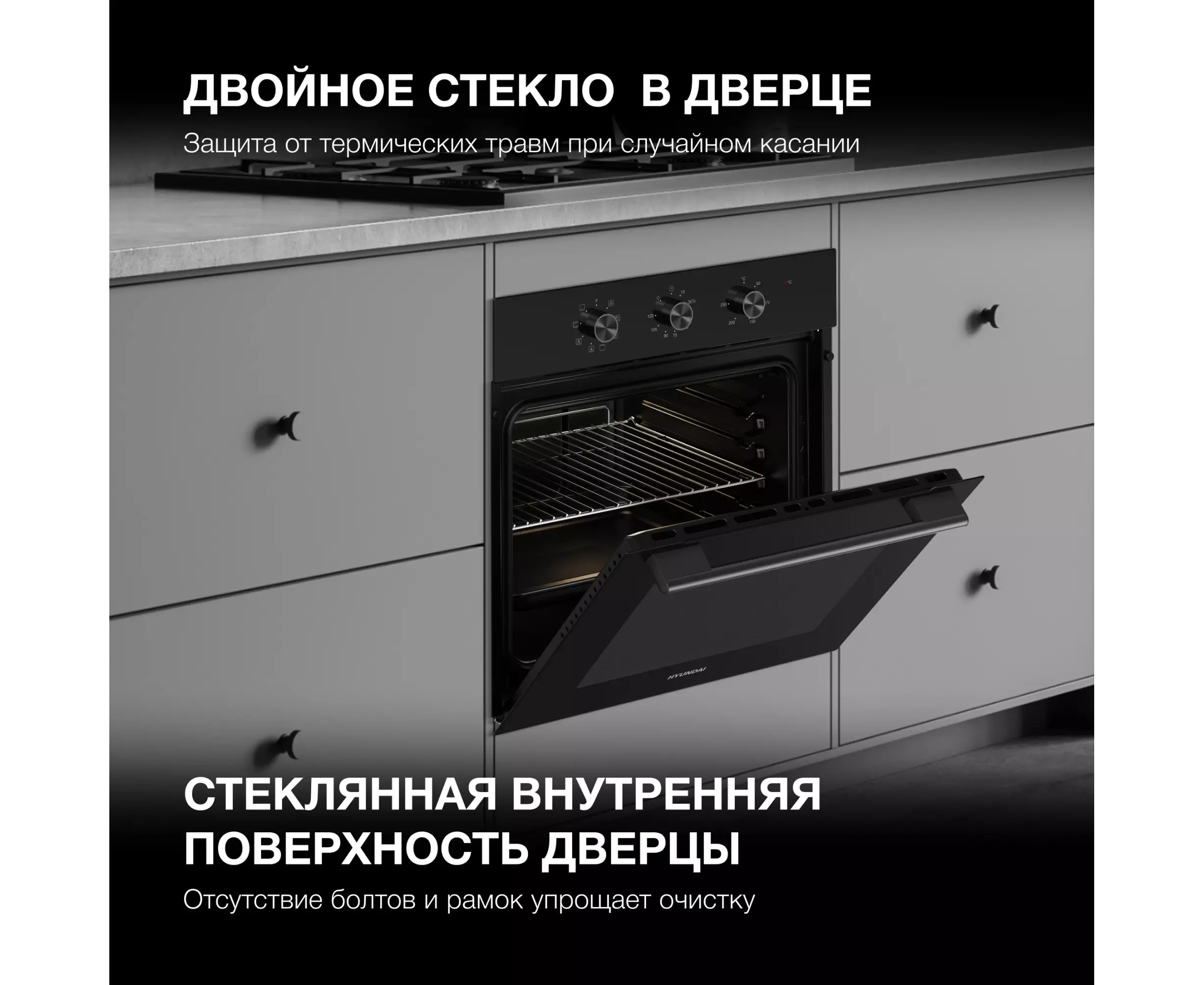 Полностью стеклянная внутренняя поверхность дверцы духовки