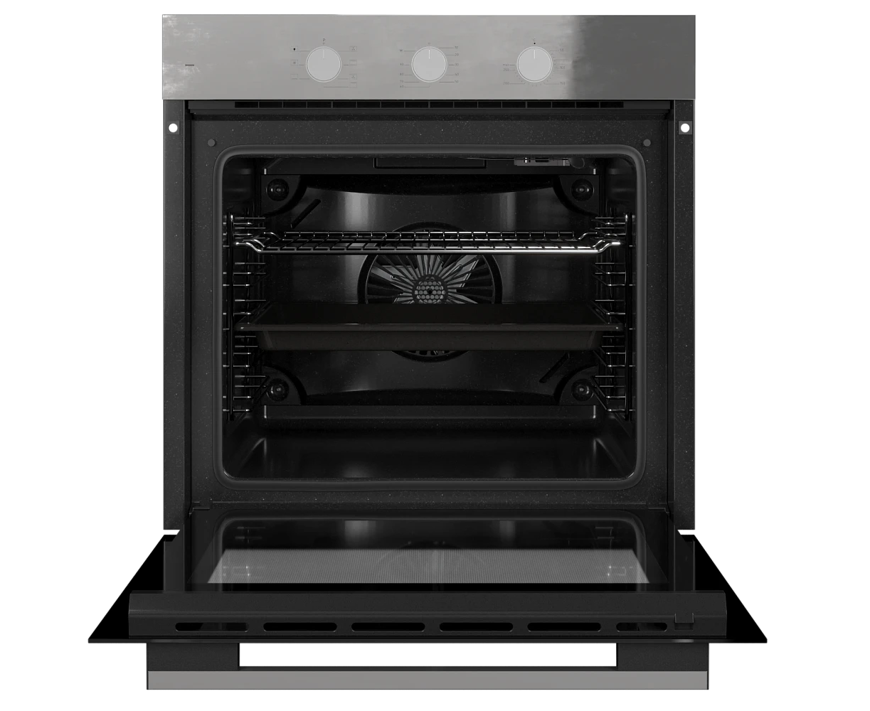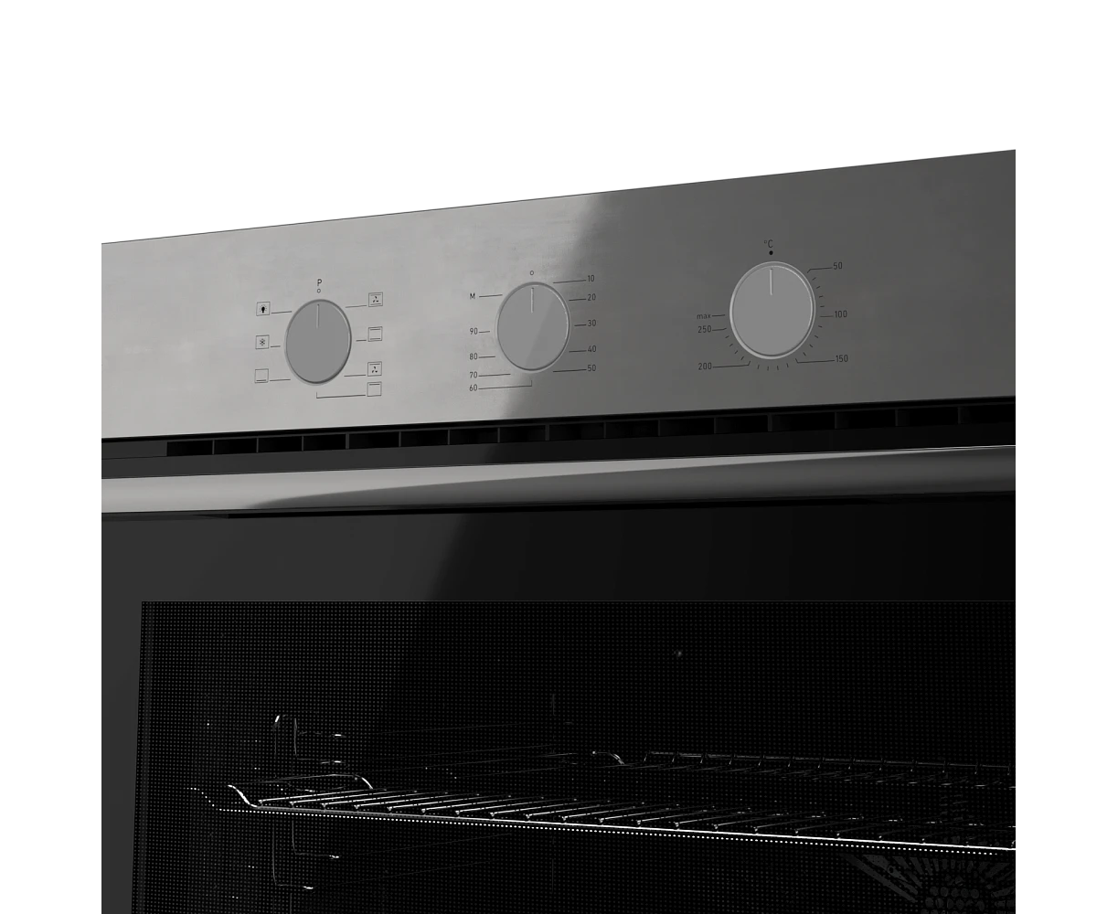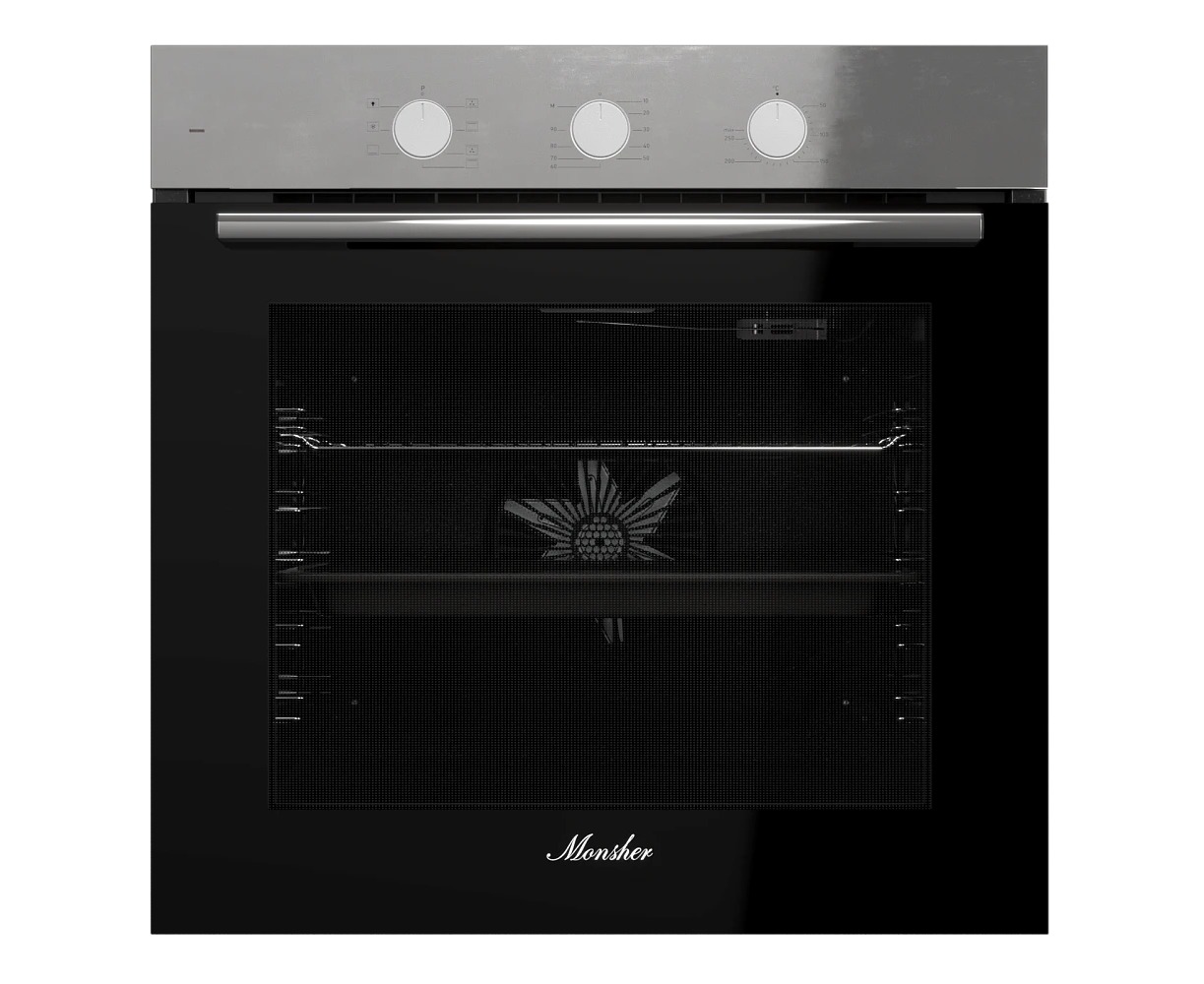 Духовой шкаф MONSHER MOE 6007 Acier 60см, объем 80л, утапливаемые переключатели, механический таймер, 2 стекла в дверце, энергоэффективность А