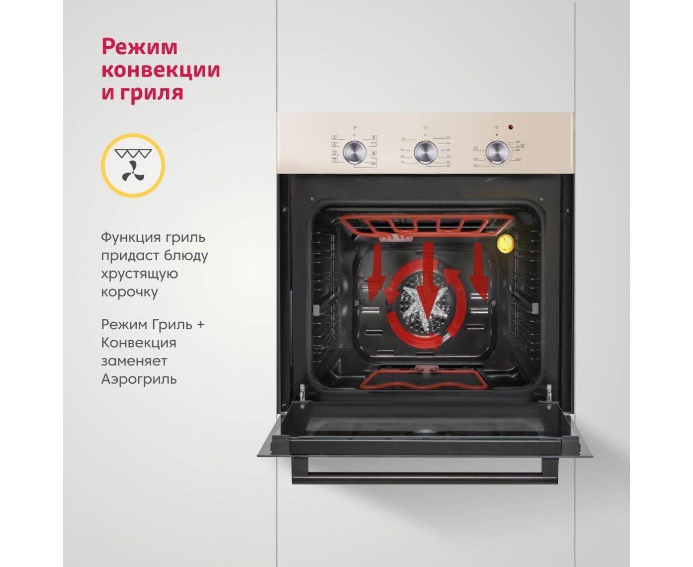 Кольцевой нагреватель + конвекция, Нижний + верхний нагрев + конвекция, Конвекция, Нижний + верхний нагрев, Верхний нагрев, Гриль, Гриль + конвекция