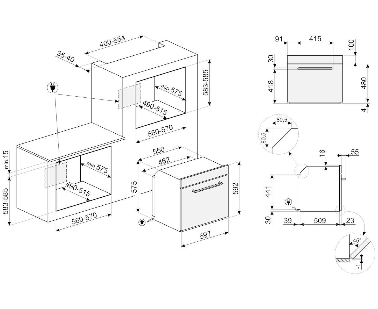 большой гриль, верхний нагрев, верхний нагрев + нижний нагрев, гриль + конвекция, конвекция, нижний нагрев, нижний нагрев + конвекция
