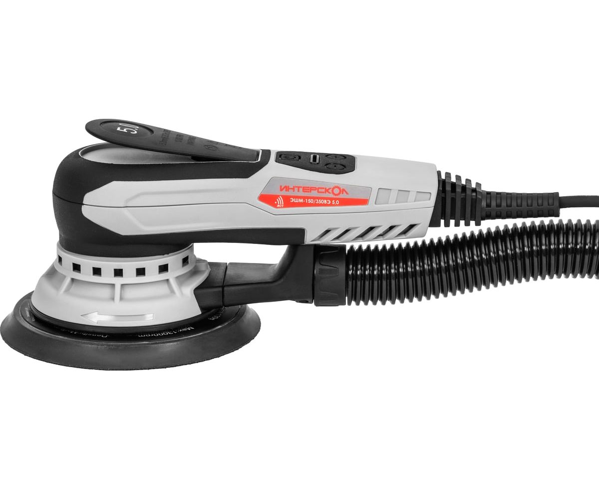 Эксцентриковые профессиональные шлифмашины ИНТЕРСКОЛ ЭШМ-150/350ВЭ оборудованы бесщеточным (вентильным) сетевым двигателем, работающим под управлением цифрового электронного блока. Повышенный коэффициент полезного действия двигателя и отсутствие редуктора обеспечивают шлифмашине высокую энергоэффективность и рекордно малый вес. В сочетании со схемой динамической балансировки это снижает массу изделия и позволяет оператору машины эффективно шлифовать длительное время не уставая. Эквивалентная мощность в пересчете на традиционную схему с коллекторным двигателем и редуктором составляет 600Вт, что достаточно практически для всех операций эксцентрикового шлифования. Продуманная конструкция пылеудаления при эксплуатации с пылесосом удаляет практически всю образующуюся при шлифовке пыль, повышая качество шлифовки и сохраняя чистоту на рабочем месте. Регулировка оборотов от 4000 об/мин до 10000 об/мин с шагом 1200 от/мин, эксцентриситет 5,0мм и тормоз тарелки обеспечивает как высокую эффективность шлифовки, так и финишное качество поверхности, потому что частицы абразива каждый раз проходят по новой траектории.