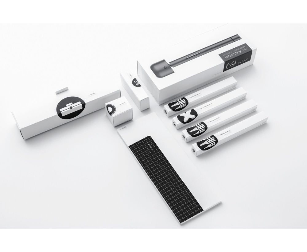 Белый футляр с плавными линиями, произведение искусства в ваших руках. В максимальный комплект входит магнитный коврик, отвертка, база, медиатор, присоска, винты, кабель для зарядки, магнетизатор, набор бит, а так же кейс для удобства использования в самых различных ситуациях
