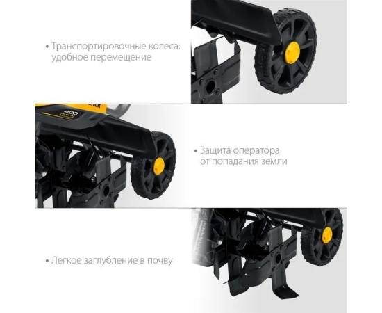 Транспортировочные колеса позволяет с легкостью перевозить культиватор по участку