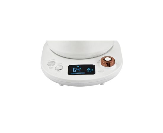 Особенности: LCD-дисплей, база с кнопками управления, закрытый нагревательный элемент, защита от включения без воды, защита от перегрева, носик специальной формы, стеклянная колба