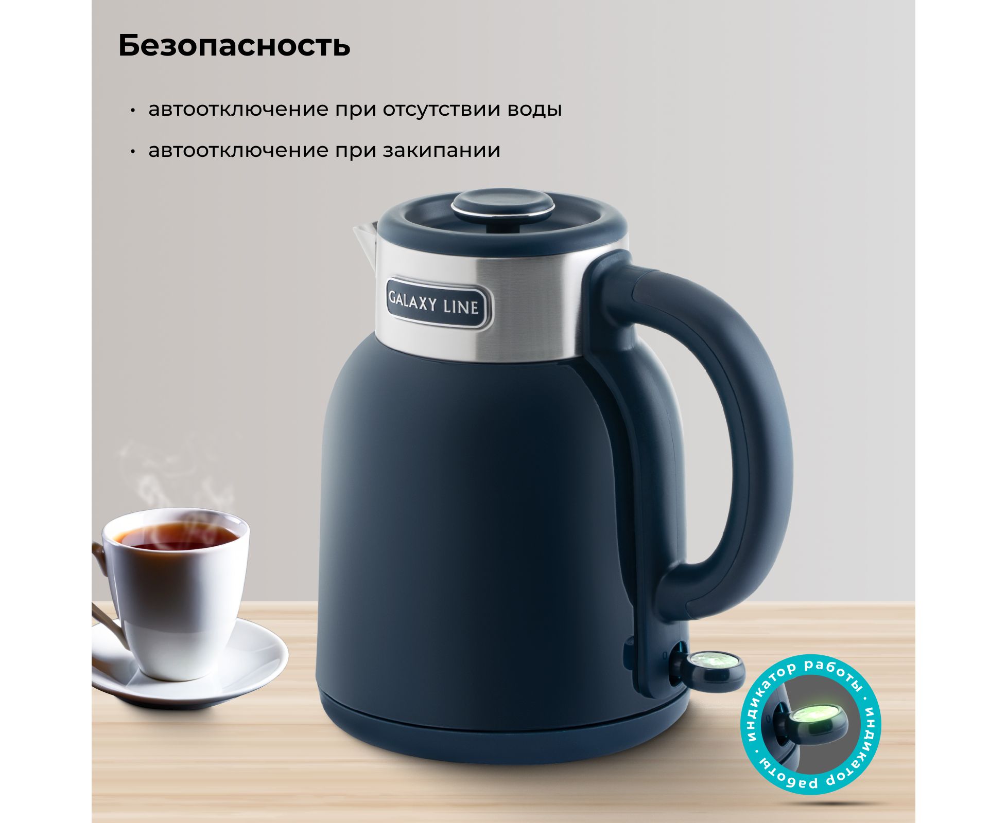сохраняя воду горячей долгое время. Об этот чайник невозможно обжечься, его не нужно часто подогревать, что обеспечивает безопасность и экономию электроэнергии.