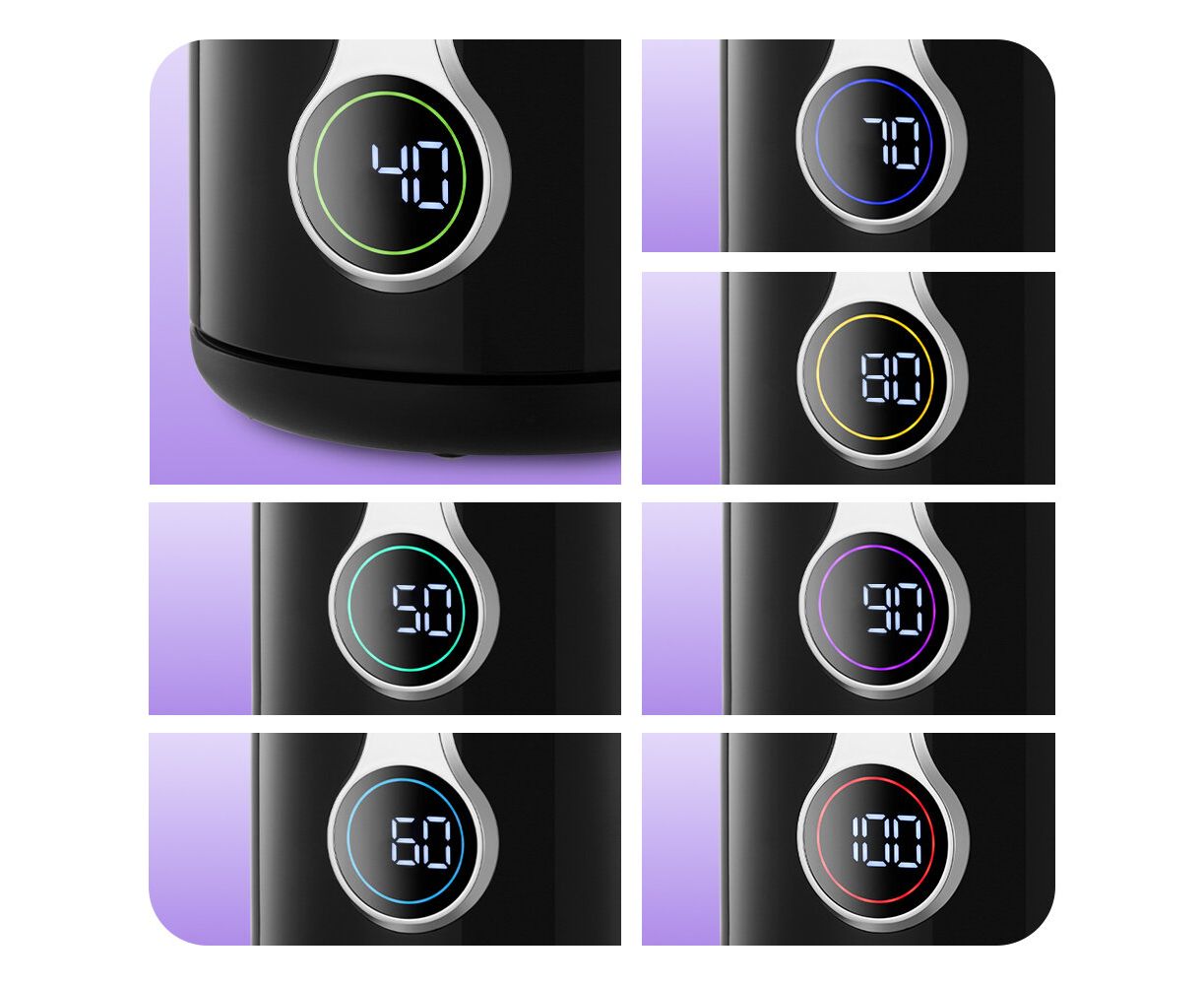 Чайник не только вскипятит воду, но и нагреет её от 40 до 90 °C с шагом 10 ° C — идеально для заваривания разных сортов чая. Функция поддержания температуры сохраняет тепло до 2 часов.