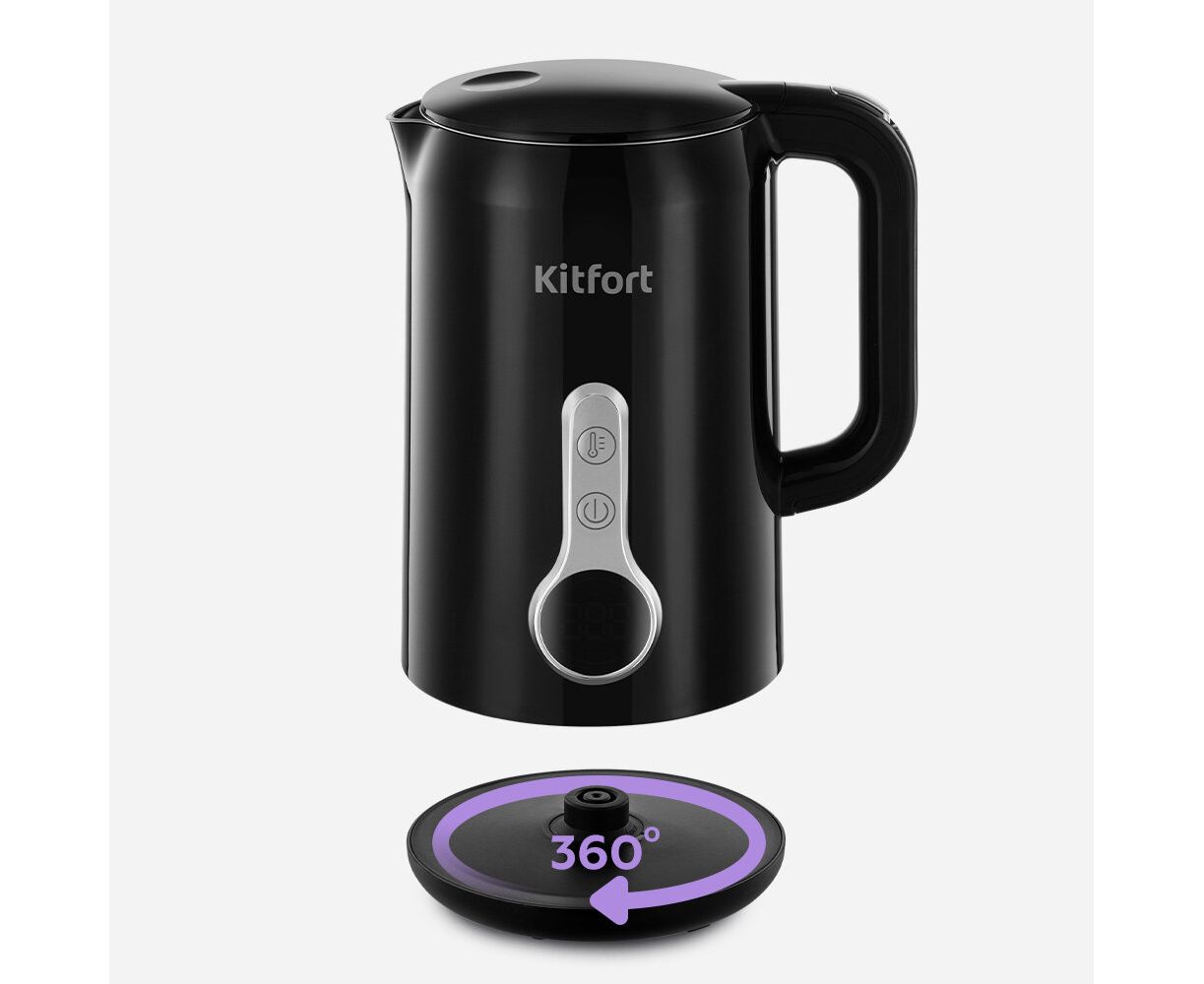Подставка с центральным контактом позволяет разместить чайник в любом положении, обеспечивая возможность вращения на 360 градусов.