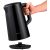 Внешняя поверхность чайника изготовлена из высококачественного черного пластика, что позволяет избежать случайного ожога. Внутренняя поверхность полностью металлическая, выполненная из нержавеющей стали устойчива к окислению и коррозии.