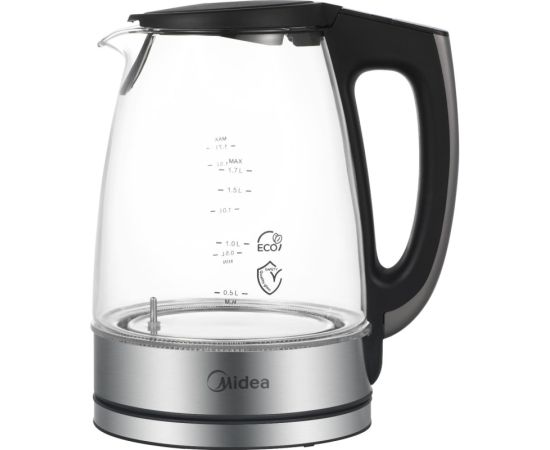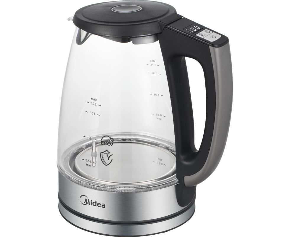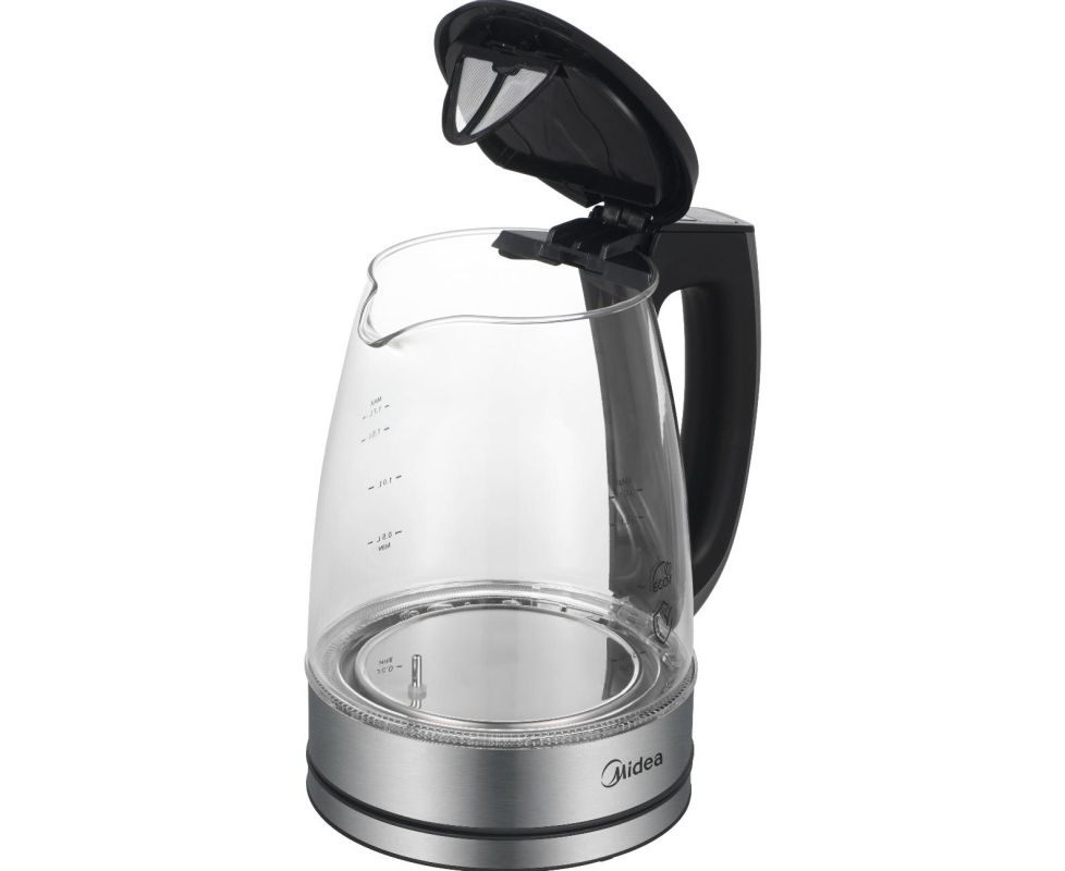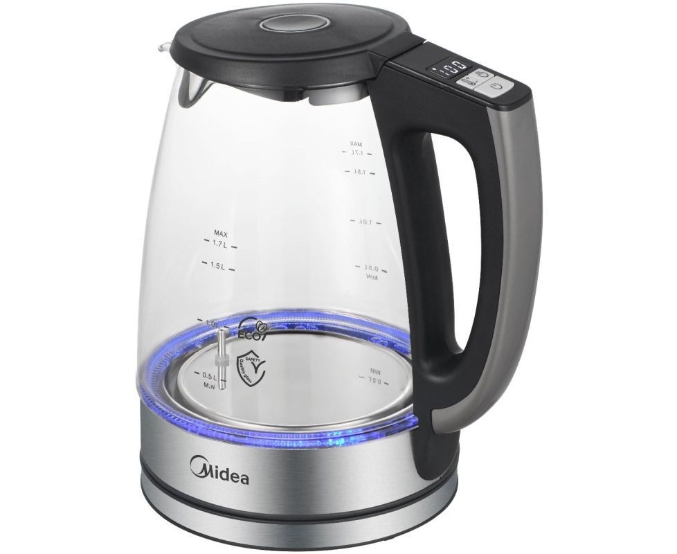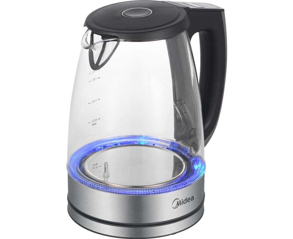 Электрочайник Midea MK-8019 объемом 1,7 л и мощностью 2200 Вт оснащен нагревательным элементом закрытого типа. Корпус модели изготовлен из термостойкого стекла.