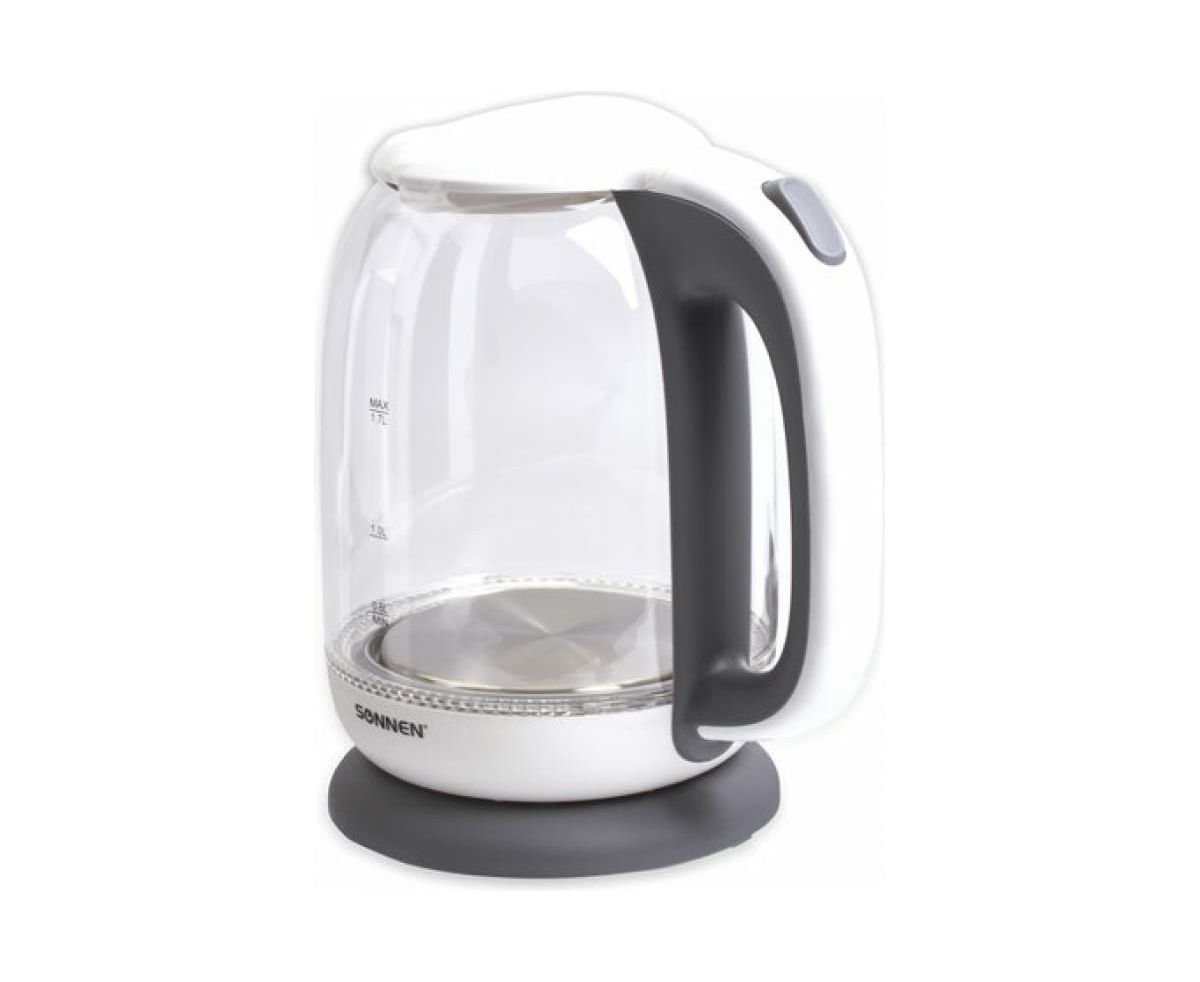 Электрочайник SONNEN KT-1792, 1,7л, 2200 Вт, закрытый нагревательный элемент, стекло, белый, подсветка, 454348