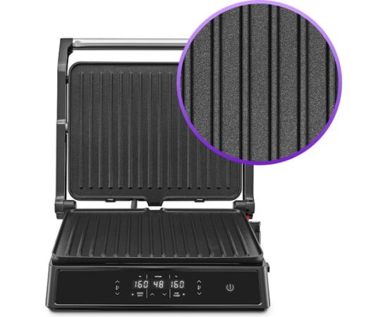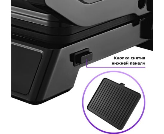 На панели нанесено антипригарное покрытие, что позволяет готовить с минимальным количеством масла или без него. Такое покрытие также облегчает процесс чистки панелей. Панели у этого гриля съемные.